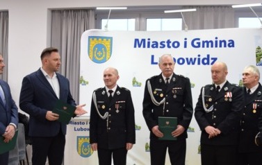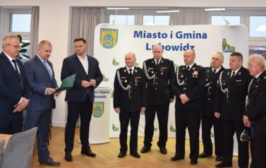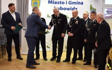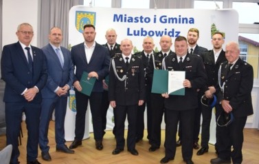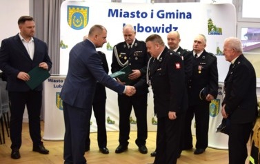Podczas uroczystości Jarosław Czapliński - Burmistrz Miasta i Gminy Lubowidz przekazał zakupiony sprzęt i wyposażenie następującym jednostkom: